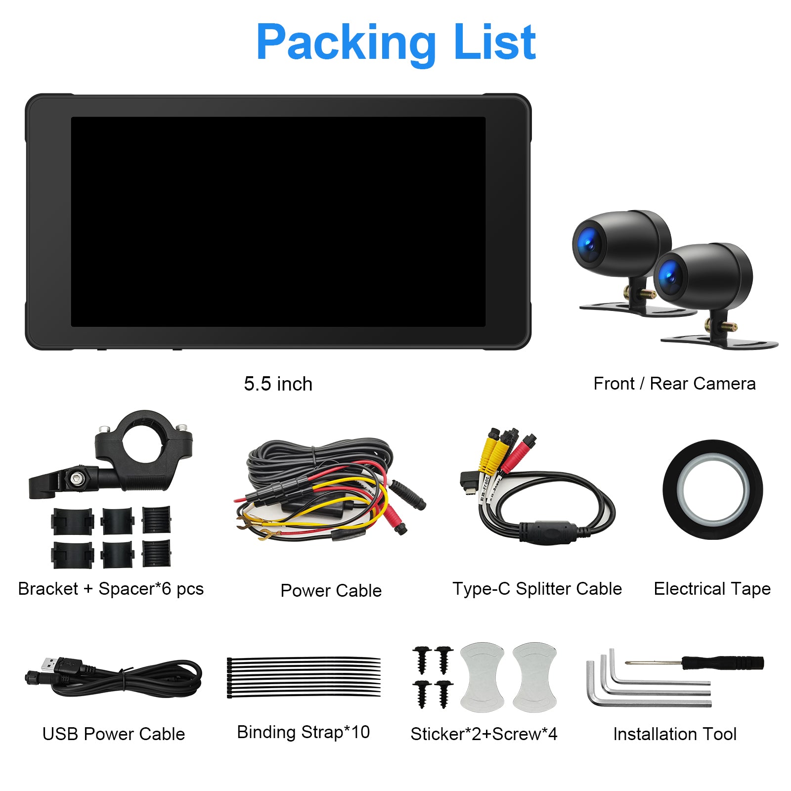 Included Components | Mounting Brackets, 5.5 Inch IPS Touch Screen |